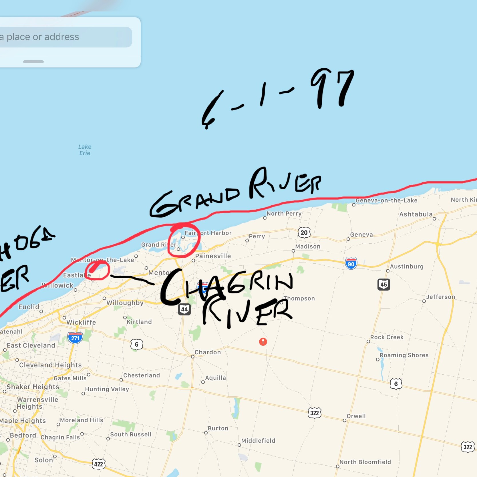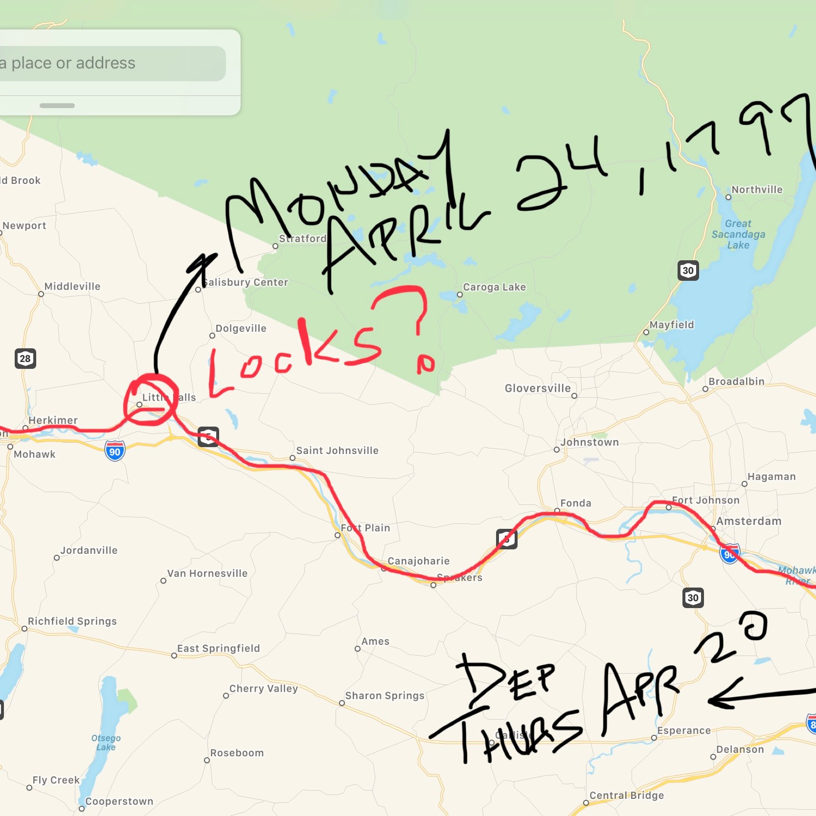 While I knew I couldn’t/shouldn’t write a story couched in the Native American experience or from a Native American’s perspective, I studied the Native Americans of New York and Ohio because I did know I wanted to ground this story in a world where the original inhabitants so richly honored the land. (Interesting facts: the Haudenosaunee—comprised of Mohawks, Onondagas, Senecas, Cayugas, and Oneidas—is considered the oldest participatory democracy on the planet. And its constitution is said to have been a model for the American Constitution.) The Iroquois creation myth of Skywoman and her twin grandchildren helped capture a theme of dualities that I’d been threading through the entire collection. I researched the Cuyahoga River, learned of its various names: Cuyohaga is Seneca or Iroquois for “place of the jawbone,” while Diohaga (Delaware) and Cayagaga (Mohawk) both meant “crooked river.” (I chose Cayagaga for the title [over the modern Cuyahoga] so as to put us in a time when the river was not “ours”—you know, as much as anyone can own land or waterways.) I studied the 1796 survey team led by Moses Cleaveland that first explored New Connecticut / Connecticut Western Reserve (as the region was then called). I read Seth Pease’s journals recounting his two survey trips (one with Cleaveland and one without); I mapped out the routes the survey teams took—this wasn’t easy as location names changed over time and Pease didn’t always consistently use the same spelling of, say, a town or river from mention to mention. (See below for my finger-scrawled marked-up maps attempting to track the surveying team’s second journey.) Pease’s journal, overall, was a great resource, though. It gave me some great add-on details: the fact that he saw an elephant, for one, and the use of tartar emetic, for another.